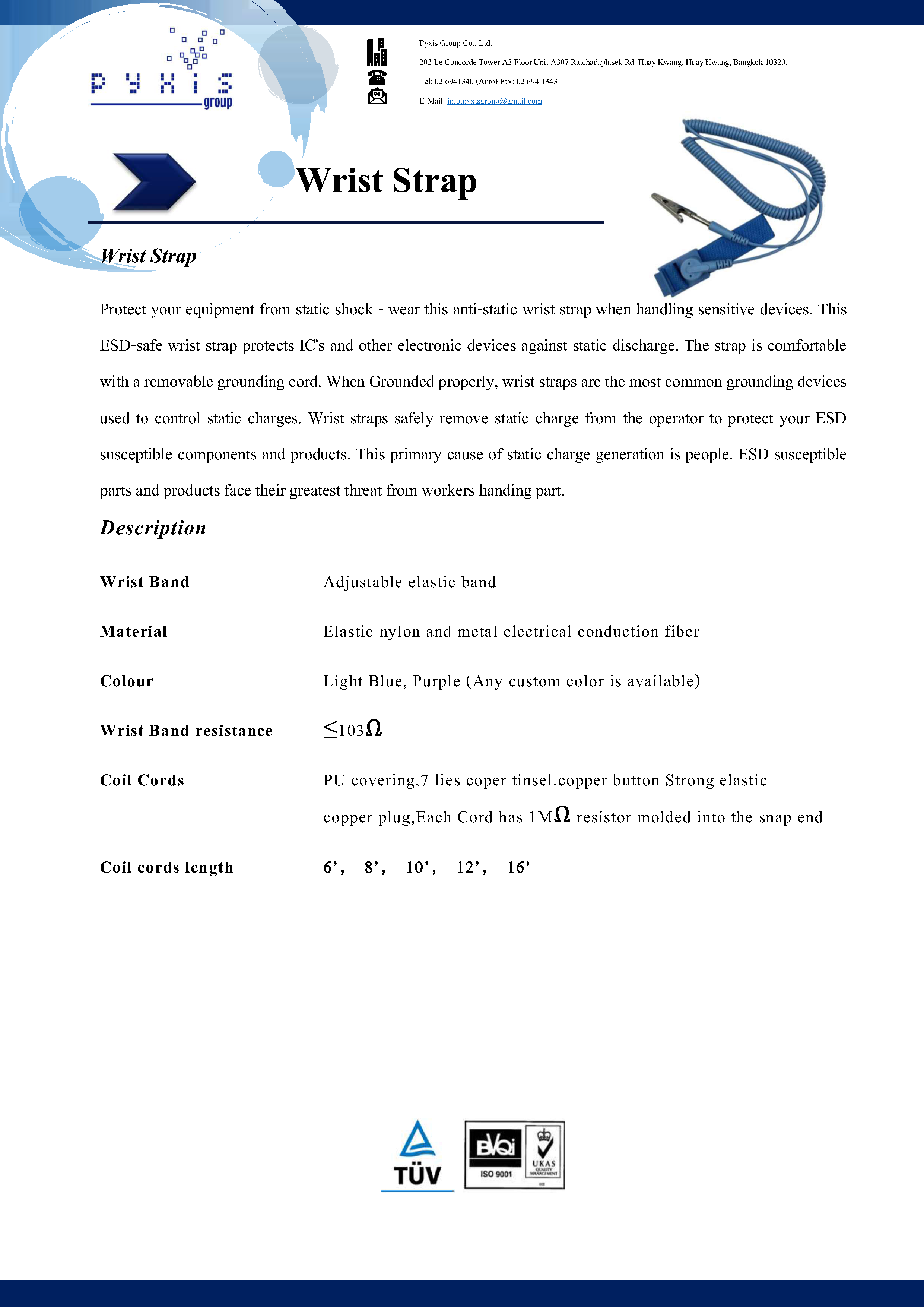 ESD Wrist Strap สายรัดข้อมือป้องกันไฟฟ้าสถิตย์ เกรดพรีเมี่ยม ผลิตจาก พลาสติกคุณภาพสูง ขึ้นด้วย Mould หล่อออกมาเป็นชิ้นเดียว แข็งแรงทนทาน ประกอบกับสายรัดElasticคุณภาพสูง ทำให้อายุการใช้งานยาวนานกว่ายี่ห้ออื่นจากประเทศจีนมากๆ ลองขอตัวอย่างไปทดสอบดูจะรู้ว่าคุ้มค่ากว่ามาก