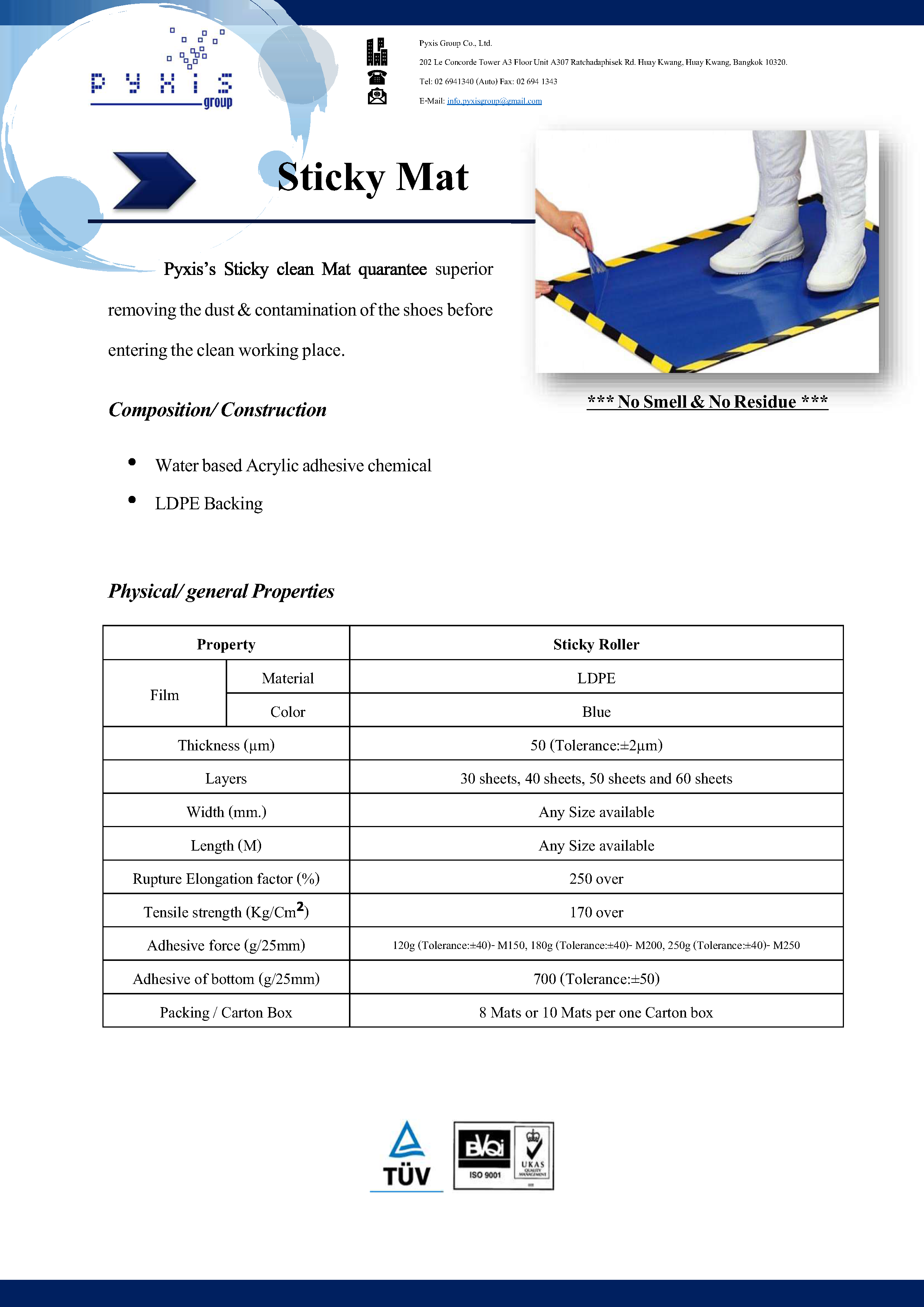 Sticky Mat แผ่นกาวดักฝุ่น ทำความสะอาดผุ่นที่อาจเกิดจากรองเท้า รถเข็น ก่อนที่จะเข้าห้องควบคุมฝุ่น หรือ Cleanroom size 26"x45" เรานำเข้าสินค้าเองทั้งหมด และมีราคาส่งให้ถ้ามีจำนวนการสั่งซื้อที่เยอะ