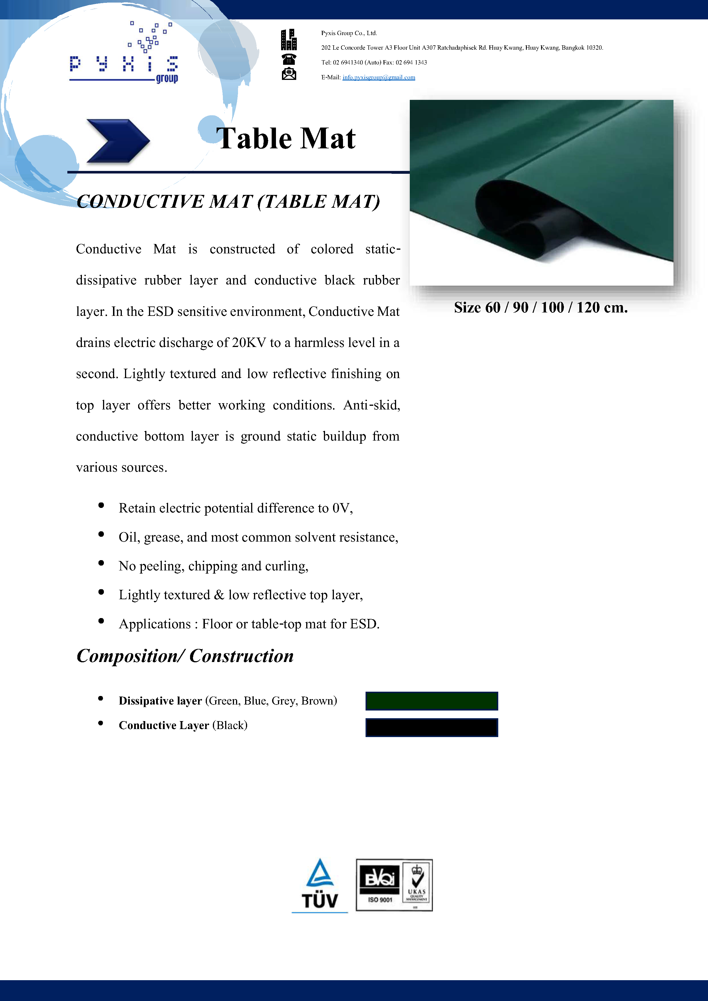 แผ่นยาง ESD ปูพื้น หรือ ปูโต๊ะ ใน Line ผลิต คุณภาพ premium สีเขียวเข้มพื้นดำ มีให้เลือกสรรทุก size ยอดนิยม ตั้งแต่ความกว้าง 60cm, 90cm, 1M,120cm ความยาว 10เมตร คุณภาพพรีเมี่ยม ราคาดีที่สุด จัดส่งรวดเร็ว Add Line: @pyxisgroup เพื่อสอบถามเพิ่มเติมได้ทันที